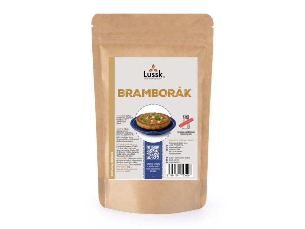 Směs pro dokonale ochucené bramboráky jako od babičky. Obsahuje česnek, majoránku, pepř a další bylinky pro výbornou chuť i vůni – stačí přidat k bramborám a je hotovo.