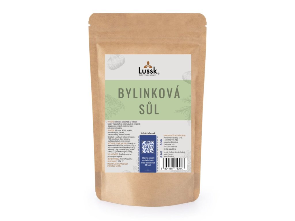 | Obsahuje: | sůl (max. 80 %), kopřiva, petrželová nať, česnek, koriandr, libeček, bazalka |