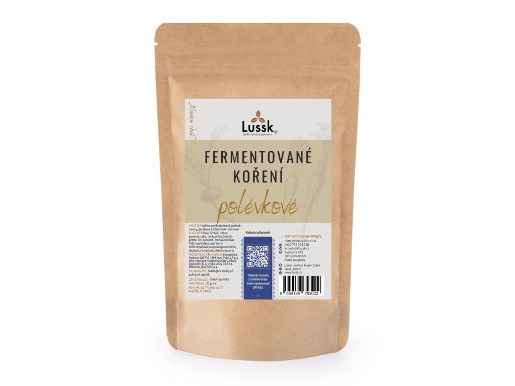 Směs zeleniny, bylinek a koření určená k dochucení polévek a vývarů. Díky přirozené fermentaci se chuť surovin lépe uvolňuje a koření je zároveň lépe stravitelné. Obsahuje minimum mořské soli a staví hlavně na chuti samotných surovin. Perfektní pro tradiční českou kuchyni i moderní recepty.
