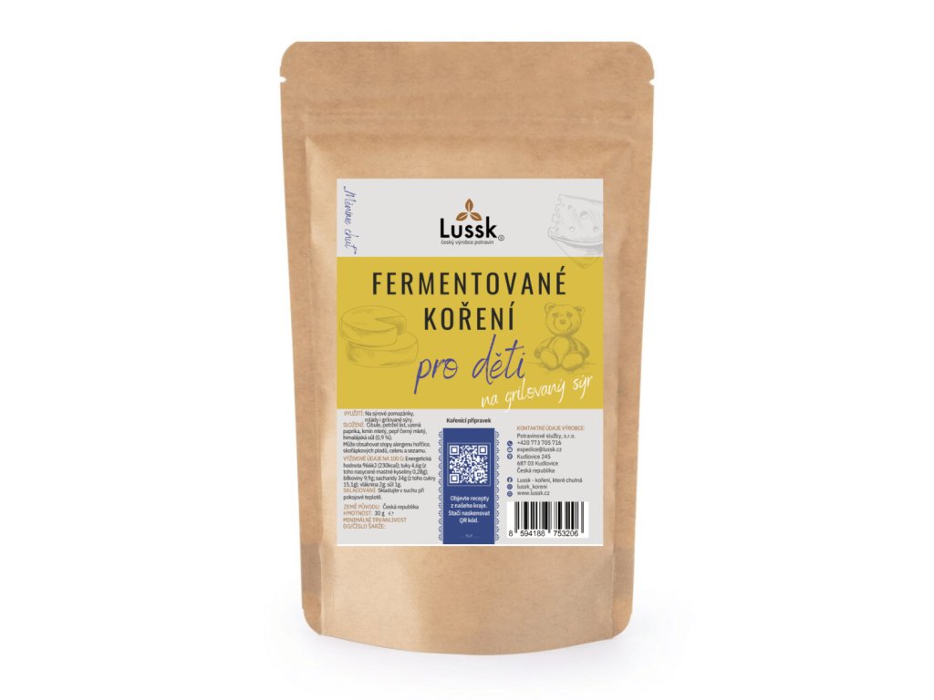 Fermentované koření na sýrové dobroty je jemná směs navržená speciálně pro dětské chutě. Hodí se ke grilovaným a pečeným sýrům, toustům i jednoduchým jídlům se sýrem. Díky přirozené fermentaci je koření lépe stravitelné a umožňuje dochutit jídlo s minimálním množstvím soli. Neobsahuje žádná éčka, konzervanty ani umělá dochucovadla a není pálivé, takže je vhodné i pro malé děti. Složení je jednoduché a přehledné – cibule, petržel, paprika, kmín a pepř. Koření zvýrazní chuť sýra, ale nepřebije ji, takže si děti jídlo užijí a rodiče mají jistotu šetrného dochucení.