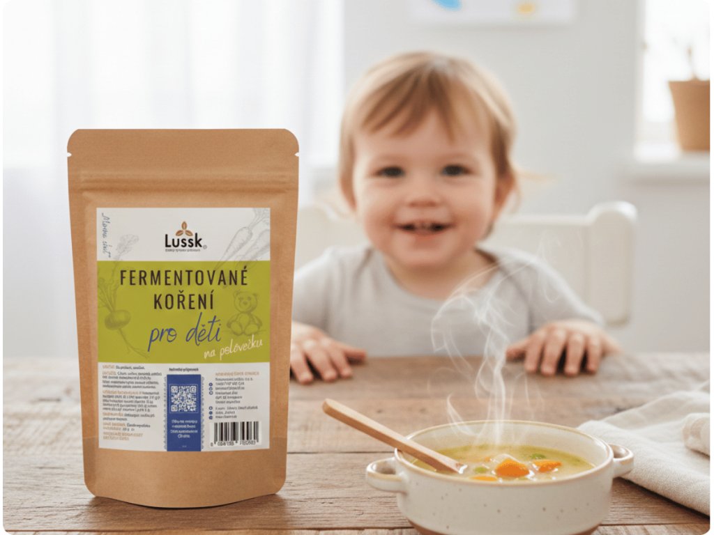 Jemné fermentované koření vytvořené speciálně pro dětské polévky. Zvýrazní chuť vývarů i zeleninových polévek přirozenou cestou, bez zbytečné soli a chemie. Díky fermentaci je koření lépe stravitelné a vhodné pro každodenní vaření pro děti. Obsahuje minimum soli (do 1 %) a není pálivé.