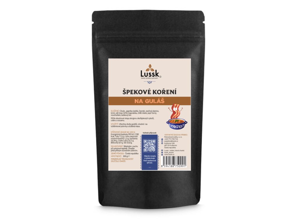 Poctivé špekové koření určené především na guláše a dušená jídla. Základ tvoří skutečný farmářský vypražený špek doplněný kořením, které se tradičně používá v české kuchyni. Dodá guláši typickou vůni a chuť, jakou znáte z domácího vaření. Stačí malé množství a není potřeba přidávat nic dalšího.