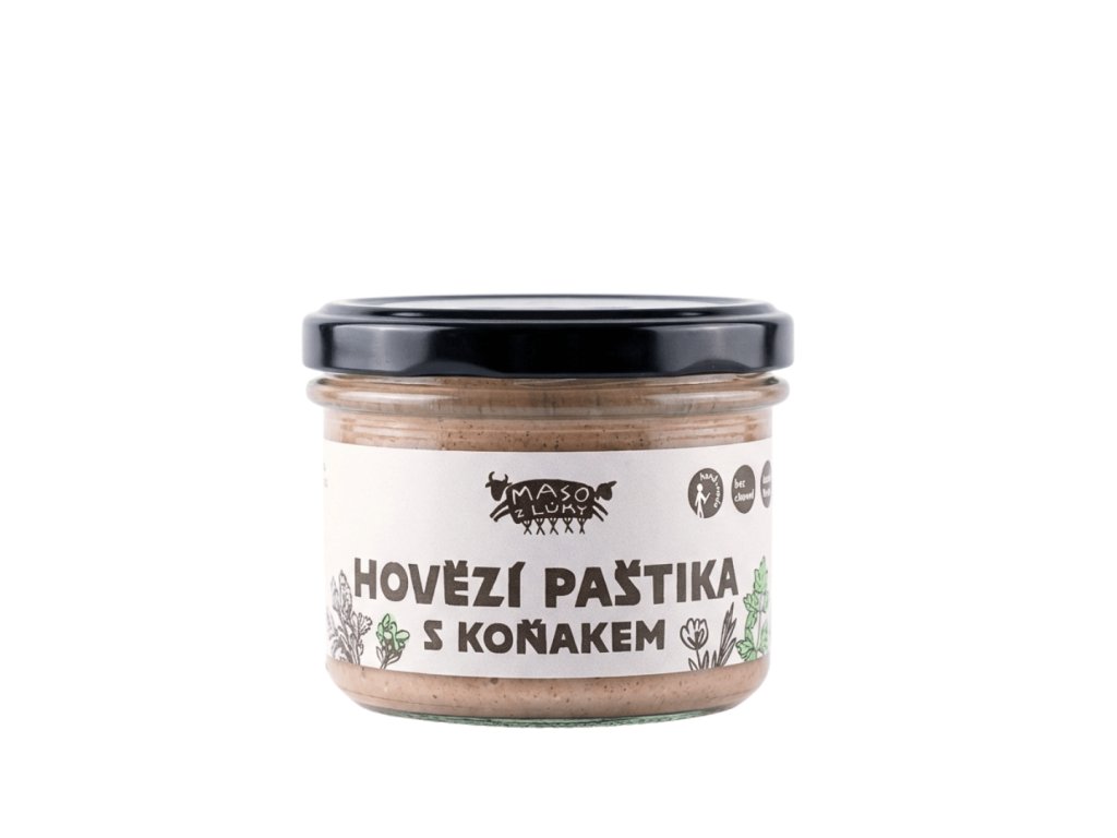 Hovězí paštika s koňakem je ochucena kvalitním koňakem. Obsahuje delikátní bio hovězí játra, bio hovězí maso a vepřové maso. Dochutili jsme ji koňakem, tymiánem, kurkumou a zeleninou pro zvýraznění chuti.