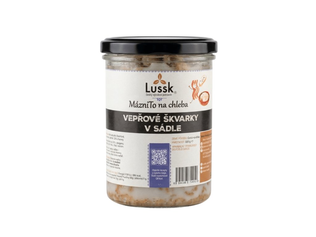 Křupavé škvarky v jemném sádle, vyrobené z kvalitních a poctivých surovin.