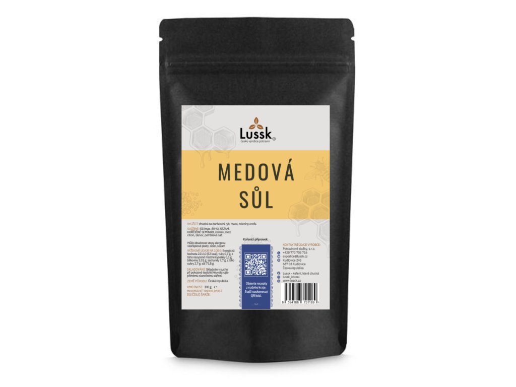 Medová sůl je neobvyklé spojení kvalitní soli a medu, které vytváří zajímavý kontrast slané a jemně sladké chuti. Doplněná bylinnými a kořeněnými tóny dodá pokrmům originální charakter a zpestří každodenní vaření. Hodí se jak pro slané pokrmy, tak i pro netradiční kombinace se sladšími surovinami. Využijete ji při vaření, pečení i finálním dochucení hotových jídel.