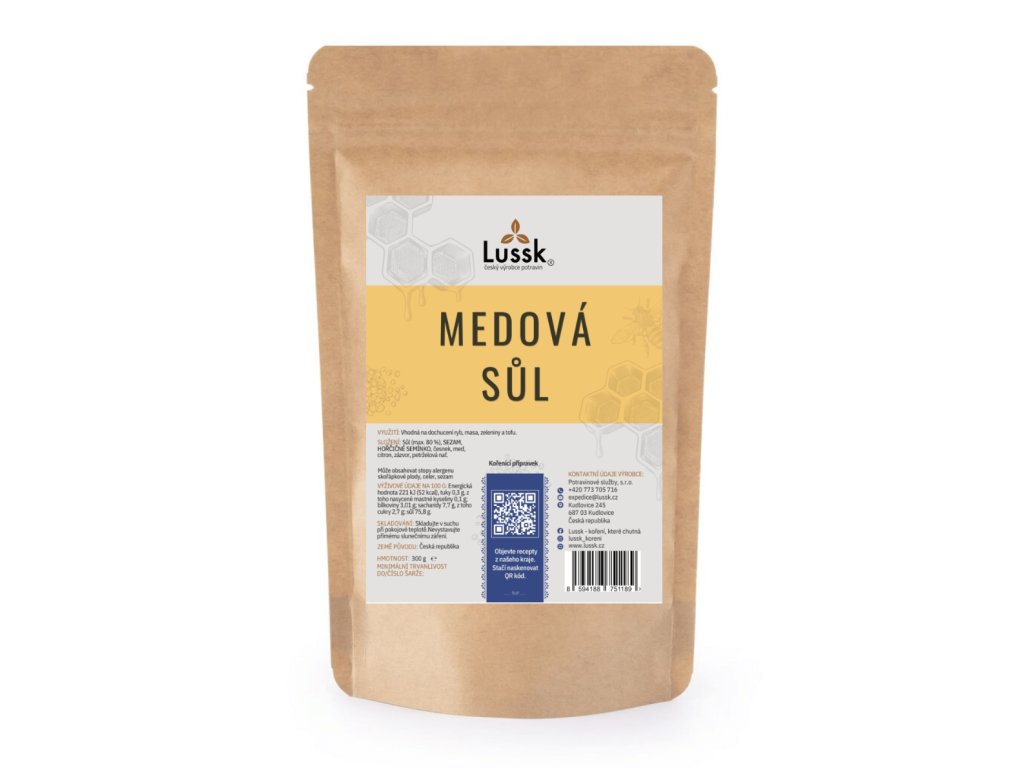 Neobvyklá kombinace soli a medu, která propojuje slané a jemně sladké chutě do jednoho harmonického dochucovadla. Doplněná bylinnými a kořeněnými tóny dodá pokrmům zajímavý chuťový kontrast a zpestří každodenní vaření. Hodí se pro slané i sladké recepty.