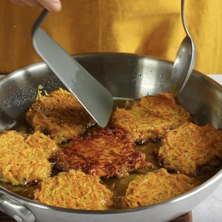 Na pánvi s trochou oleje smažte placičky dozlatova z obou stran.
