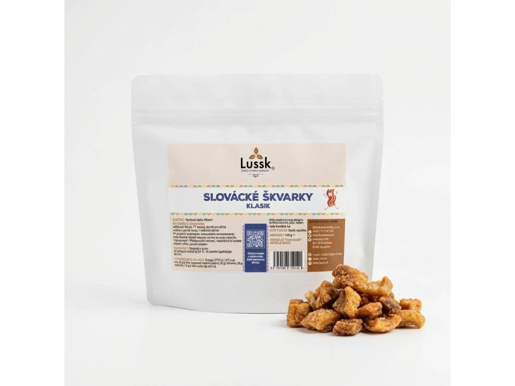 Slovácké škvarky jsou poctivá moravská pochoutka, která potěší každého milovníka tradičních chutí. Křupavé, voňavé a vyrobené z kvalitních surovin - přesně tak, jak si je pamatujete. Díky tomu, že neobsahují žádné koření ani zbytečné přísady, vynikne jejich přirozená chuť. Skvěle se hodí jako rychlé zobání k pivu, na stůl při oslavách nebo jen tak, když dostanete chuť na něco opravdu poctivého.