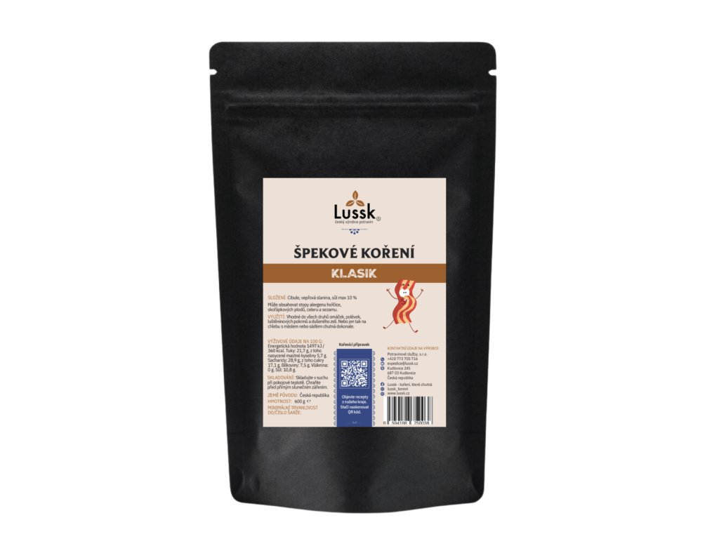 Špekové koření Klasik je založené na skutečném vypraženém farmářském špeku – žádná aromata, žádné náhražky. Díky šetrnému zpracování si zachovává typickou vůni i chuť špeku, kterou znáte z domácí kuchyně. Koření dodá pokrmům výraznou špekovou chuť a lehce kouřový tón, aniž by bylo potřeba pracně škvařit špek zvlášť. Stačí malé množství a jídlo dostane poctivý základ.