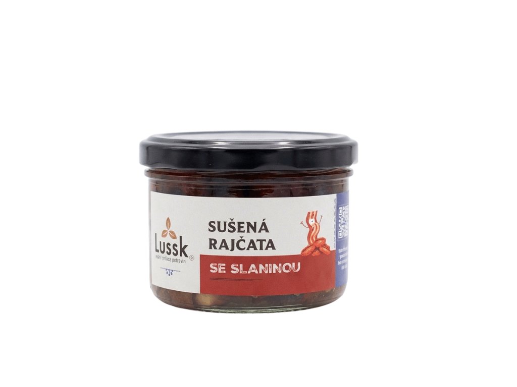 | Obsahuje: | Slunečnicový olej, sušená rajčata (36%), uzená vepřová slanina (2,5%), česnek |